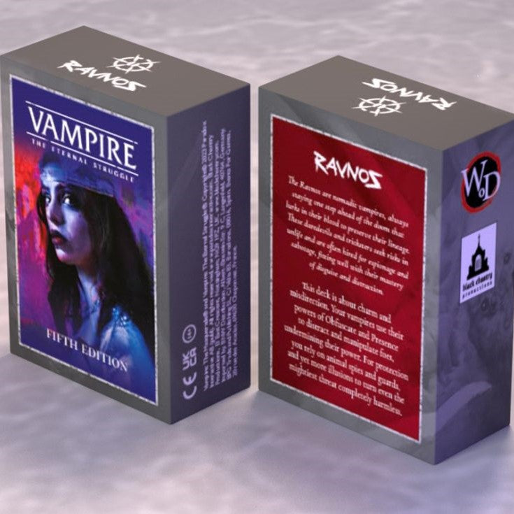 Los Ravnos son vampiros nómadas, siempre un paso adelante de la perdición que acecha en su sangre para preservar su linaje. Estos temerarios y bromistas buscan riesgos en la no-vida y a menudo son contratados para espionaje y sabotaje, encajando perfectamente con su maestría en el disfraz y la distracción.
