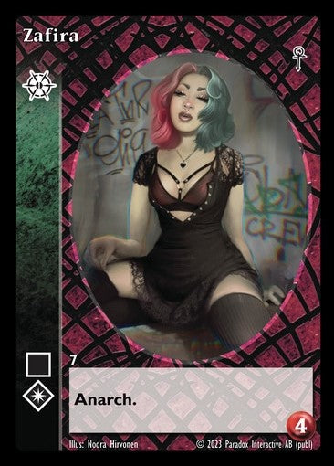 Este mazo se centra en el encanto y la desorientación. Tus vampiros utilizan sus poderes de Ofuscación y Presencia para distraer y manipular a sus enemigos, socavando su poder. Para protegerte, confías en espías y guardianes animales, y aún más ilusiones para convertir incluso la amenaza más poderosa en algo completamente inofensivo.