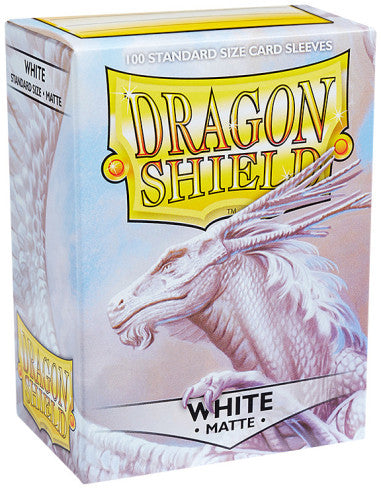 Fundas Dragon Shield Matte de tamaño estándar 63x88 para juegos de cartas como Magic the Gathering, Pokémon o El Señor de los anillos. Color Blanco Paquete de 100.