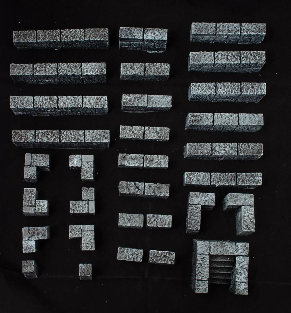 🔹 Muros, esquinas y otros accesorios para construir pasillos, cámaras y fortalezas.