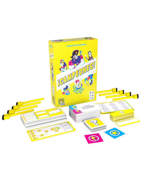 ¡Campeones! es el juego de mesa que te sumerge en la intensa experiencia de competir en diversas disciplinas deportivas. Diseñado para desafiar tu estrategia y habilidades, este emocionante título te hará sentir como un verdadero campeón mientras compites por alcanzar la victoria en una variedad de retos atléticos.
