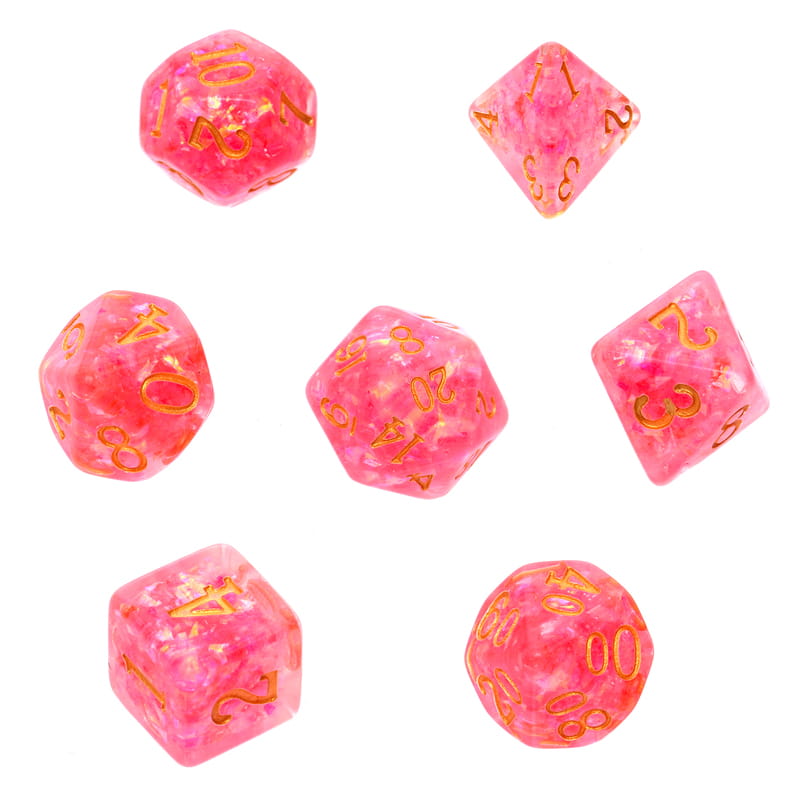 Los Dados con Esquirlas contienen cristales rotos perfectamente equilibrados. Su diseño encapsula fragmentos brillantes y translúcidos, creando un efecto visual que simula vidrio fracturado, energía condensada o gemas fragmentadas. Cada tirada se convierte en un espectáculo de luz y textura, haciendo de estos dados una pieza imprescindible para cualquier coleccionista o jugador de rol.