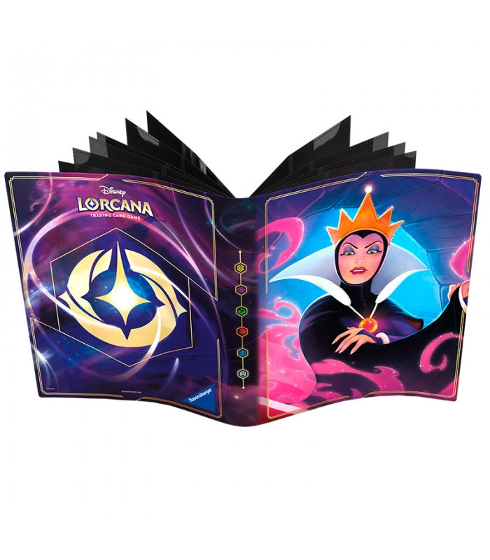 El Portfolio o álbum de colección de Disney Lorcana es el accesorio ideal para proteger, organizar y exhibir tus cartas favoritas. Cada portfolio incluye páginas con fundas transparentes, normalmente con capacidad para guardar 4 o 9 cartas por lado, permitiendo una visualización ordenada y elegante de tu colección completa.