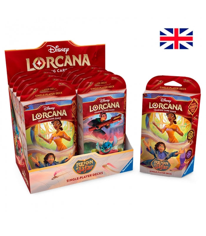 Reign of Jafar se centra en el ascenso del poder y la ambición. Inspirada en la figura icónica del villano de Aladdin, esta edición explora la sed de control, la magia oscura y las consecuencias del deseo de dominar. Es un set lleno de dramatismo, con un aire de intriga y fuerza que transforma a los personajes conocidos en versiones más intensas. Ideal para quienes disfrutan de historias de poder, astucia y destino.
