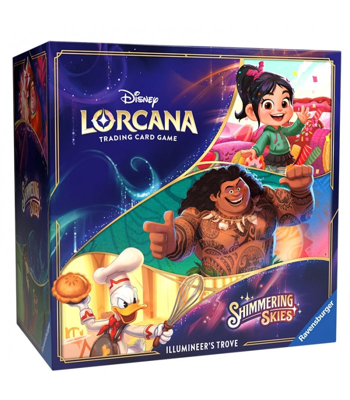 Shimmering Skies celebra la alegría, la belleza y la imaginación del universo de Lorcana. Es un set luminoso y optimista, lleno de colores brillantes y energía festiva. Los personajes parecen vivir bajo un cielo encantado donde todo es posible. La edición transmite ligereza, creatividad y encanto visual, recordando que Lorcana también es un espacio para la maravilla y la celebración.