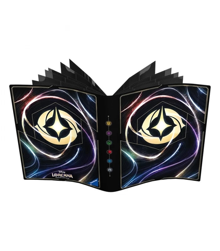 El Portfolio o álbum de colección de Disney Lorcana es el accesorio ideal para proteger, organizar y exhibir tus cartas favoritas. Cada portfolio incluye páginas con fundas transparentes, normalmente con capacidad para guardar 4 o 9 cartas por lado, permitiendo una visualización ordenada y elegante de tu colección completa.