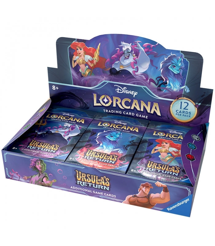 Ursula’s Return trae el drama, la oscuridad y el carisma de los grandes villanos. Esta edición gira en torno al poder de la voz y la manipulación, con un tono teatral que combina intriga y estilo. Es un set lleno de personalidad, donde los personajes se ven enfrentados a dilemas de ambición y engaño. Su encanto está en la fuerza narrativa y visual de Ursula y su influencia en todo el mundo de Lorcana.