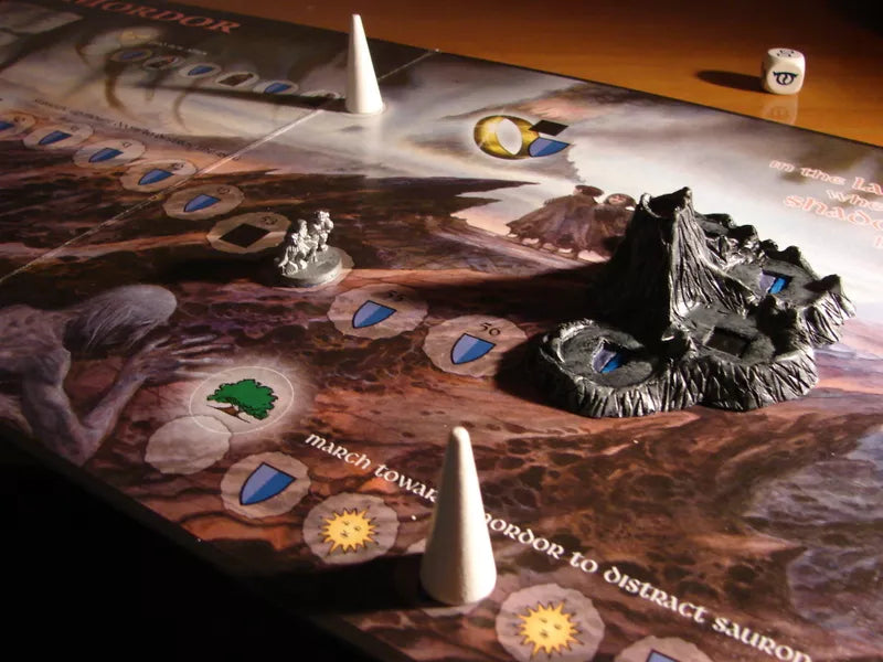 Avanza a través de cuatro tableros que representan los escenarios más memorables de la trilogía: Moria, Abismo de Helm, la madriguera de Ella-Laraña, y Mordor. Cada tablero presenta desafíos únicos que pondrán a prueba tu estrategia y cooperación. -