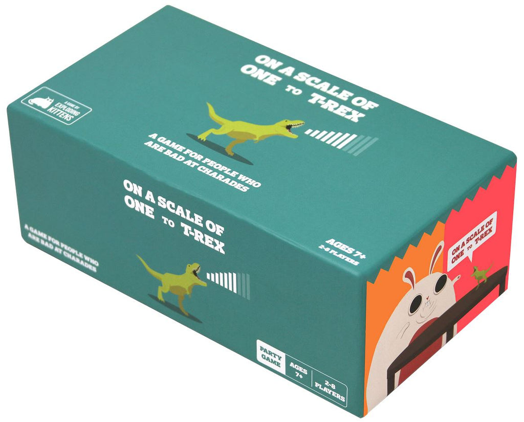 En una Escala de 1 a T-Rex es un hilarante juego de fiesta de los creadores de Exploding Kittens y Wolfgang Warsch (The Mind). Diseñado para personas "malas" en el juego de mímica, este juego único desafía a los jugadores a realizar acciones ridículas con intensidades específicas, mientras intentan emparejarse con otros jugadores. ¿Puedes rugir como un dinosaurio o hacer un baile loco con la misma intensidad que tus amigos? ¡Descúbrelo en este juego lleno de risas y creatividad!