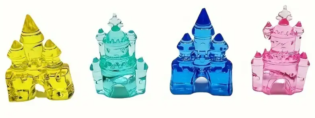 Estas fichas de castillos están hechas de plástico translúcido en tonos vibrantes, ideales para representar fortalezas, ciudades o puntos de control en juegos de mesa de temática medieval o fantástica. Su diseño compacto y lleno de carácter las convierte en un recurso visual perfecto para personalizar tus partidas.