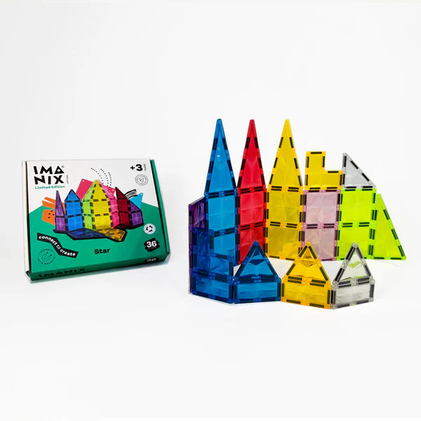 Ideal para niños a partir de 3 años, el Imanix Star 36 piezas es el complemento perfecto para descubrir nuevas formas de jugar y aprender.