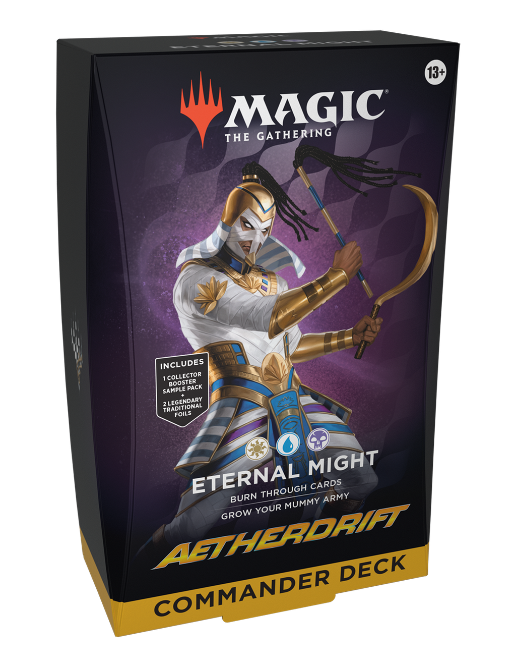 Ponte al mando de un ejército inmortal con Eternal Might, un mazo de Commander diseñado para enfrentar las épicas carreras del Multiverso desde el plano de Amonkhet. Lleno de momias listas para luchar y mecánicas únicas que destacan en batallas multijugador, este mazo es tu billete a la gloria.