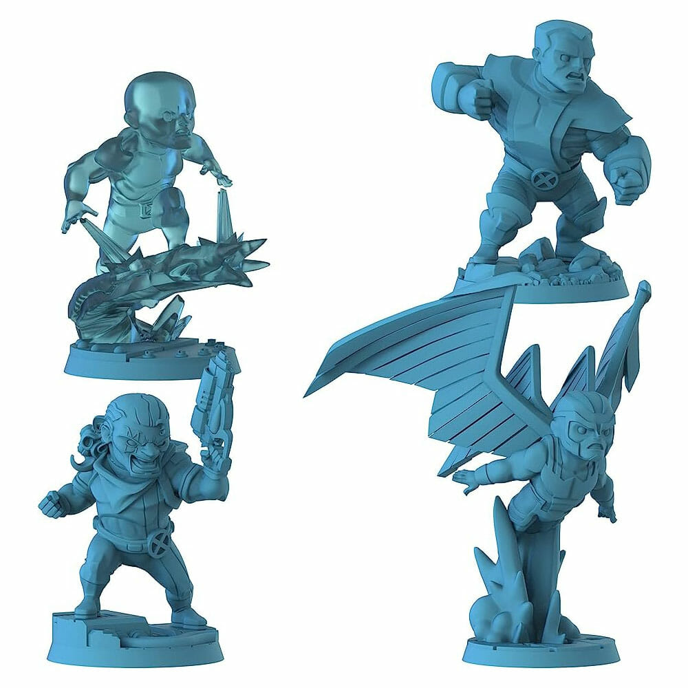 - Miniaturas detalladas de Coloso, Iceman, Bishop y Archangel, miembros del Equipo Oro