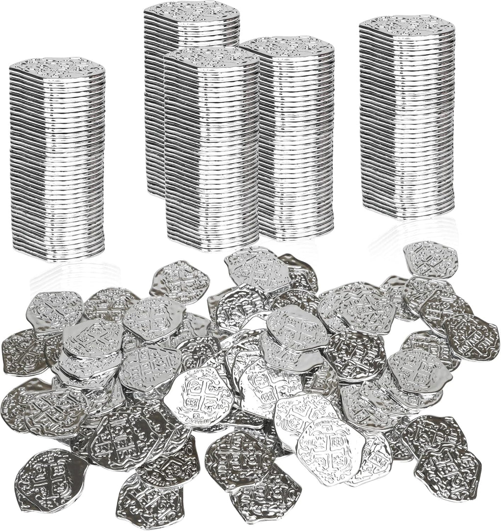 ¡Zarpa en una aventura emocionante con estos auténticos doblones de plata! Perfectos para juegos de simulación, decoraciones de fiesta o búsquedas del tesoro, estas monedas de plástico brindan horas de entretenimiento y aprendizaje para los pequeños piratas.