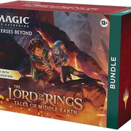 The Lord of the Rings: Tales of Middle-earth Bundle contains 8 The Lord of the Rings: Tales of Middle-earth Set Boosters—the best boosters to open just for fun—plus other The Lord of the Rings-themed goodies, with 4 Traditional Foil alternate-art cards, 40 basic land cards (20 Traditional Foils and 20 nonfoils), 1 oversized Spindown for life counter, 1 card storage box, and 2 reference cards.