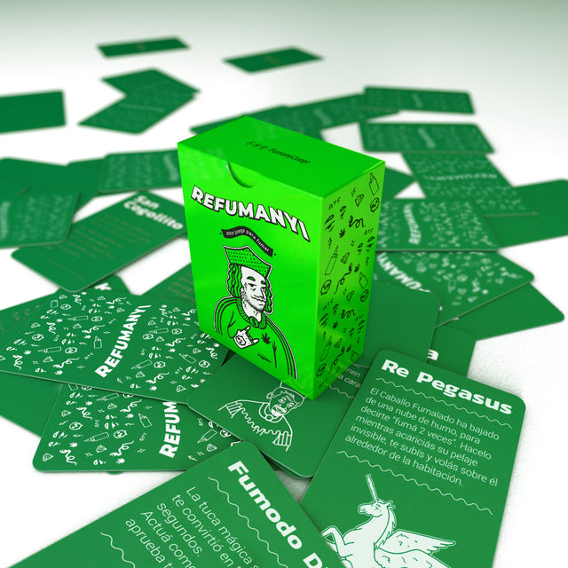 Refumanyi es la nueva versión del clásico Fumanyi, un party game diseñado para tus mejores momentos con amig@s fumetas. Este juego está cargado de humor, desafíos y una buena dosis de diversión que te hará elevarte, literalmente y metafóricamente.