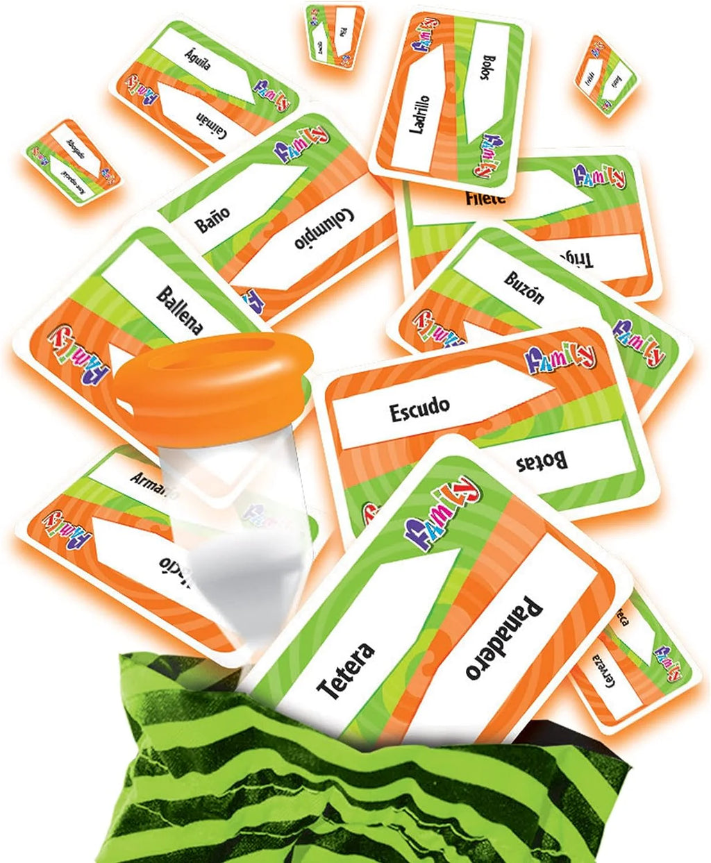 - Más de 200 cartas con nombres de personajes, objetos y animales para adivinar.