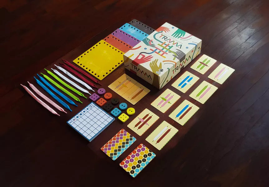 Trama es un juego de estrategia abstracta en el que los jugadores compiten por crear los patrones más impresionantes en su telar. Inspirado en el arte del tejido, este título combina tácticas, diseño y planificación en una experiencia visual y estratégica. A lo largo de cuatro rondas, los jugadores recogerán hilos de colores, los colocarán en su tablero de telar y formarán patrones que les otorgarán puntos de victoria.