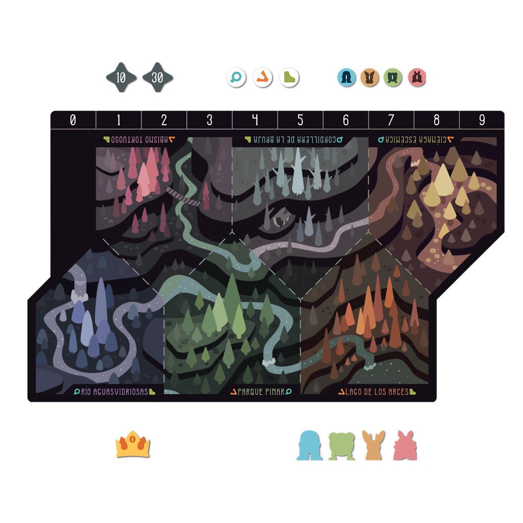 Mientras excursionistas, investigadores y cazadores merodean por el bosque, tú y otros críptidos os ocultáis en las sombras, preparando engaños y trampas para influir en sus decisiones.