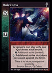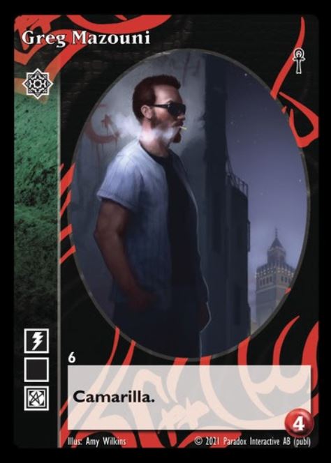 Los Hijos de Haqim fueron una vez una secta solitaria de guerreros vampíricos, hechiceros y asesinos. En las noches modernas, se debaten entre esa herencia y la obsesión por los códigos morales y la justicia rápida. En la sociedad vampírica, su papel suele ser hacer cumplir la ley. Siempre hay alguien culpable, y el culpable debe ser castigado. Este mazo se centra en la agresión constante. Tus secuaces actúan rápidamente, se esconden en las sombras y ejercen una poderosa hechicería de sangre. Son muy adecuados para cazar a los súbditos enemigos o atacar directamente a la influencia de tu oponente. Su defensa es limitada pero fuerte, eliminando las amenazas de forma preventiva y castigando los ataques a su dominio. Contents are detailed below. The number before each card is the number of copies of that card in the deck. Crypt (12 cards) 1 Asmin Kobane 1 Bijou 1 Farah Sarroub 1 Greg Mazouni 1 Kalinda 1 Kasim Bayar 2 Kassandra Tassaki 1 Khadija Al-Kindi 1 Nayarana 2 Warmaksan Library (77 cards) 4 Haqim’s Law: Retribution 1 Market Square 4 Priority Contract 1 Tension in the Ranks 1 Underworld Hunting Ground 4 Villein 1 Biothaumaturgic Experiment 2 Fleetness 4 Hunter’s Mark 1 Rutor’s Hand 2 Parity Shift 1 Mr. Winthrop 2 Resist Earth’s Grasp 6 Swallowed by the Night 2 Blood Rage 5 Flash 10 Hunger of Marduk 4 Pursuit 4 Quickness 2 Rego Motum 2 Soul Burn 2 Walk of Flame 4 On the Qui Vive 8 Second Tradition: Domain