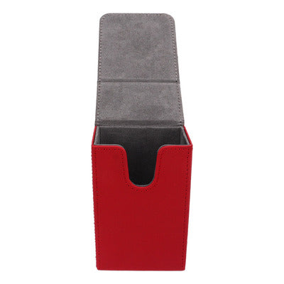 La Vault Rise 100+ es la solución perfecta para guardar y transportar tus mazos con seguridad y elegancia. Su diseño vertical facilita un acceso rápido y práctico, mientras que el cierre magnético asegura la protección total de tus cartas en cada partida o evento.